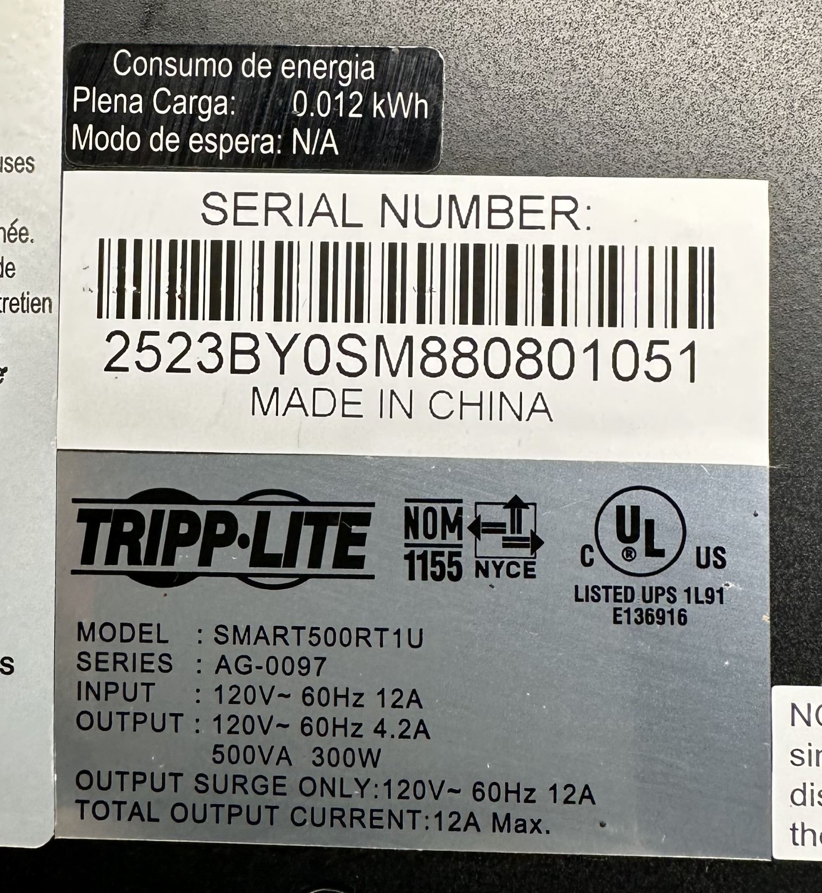 Tripp-Lite #SMART500RT1U Line-Interactive Rackmount