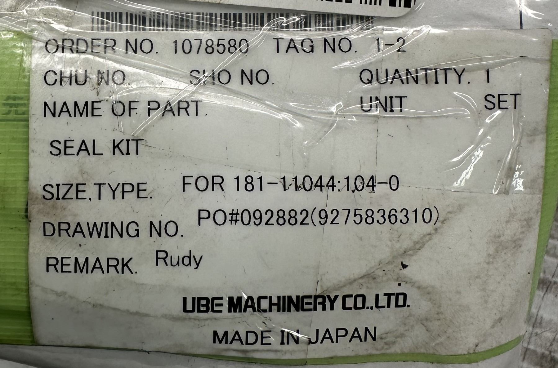 UBE Machinery Misc. Seal Kit Size Type 181-11044:104-0