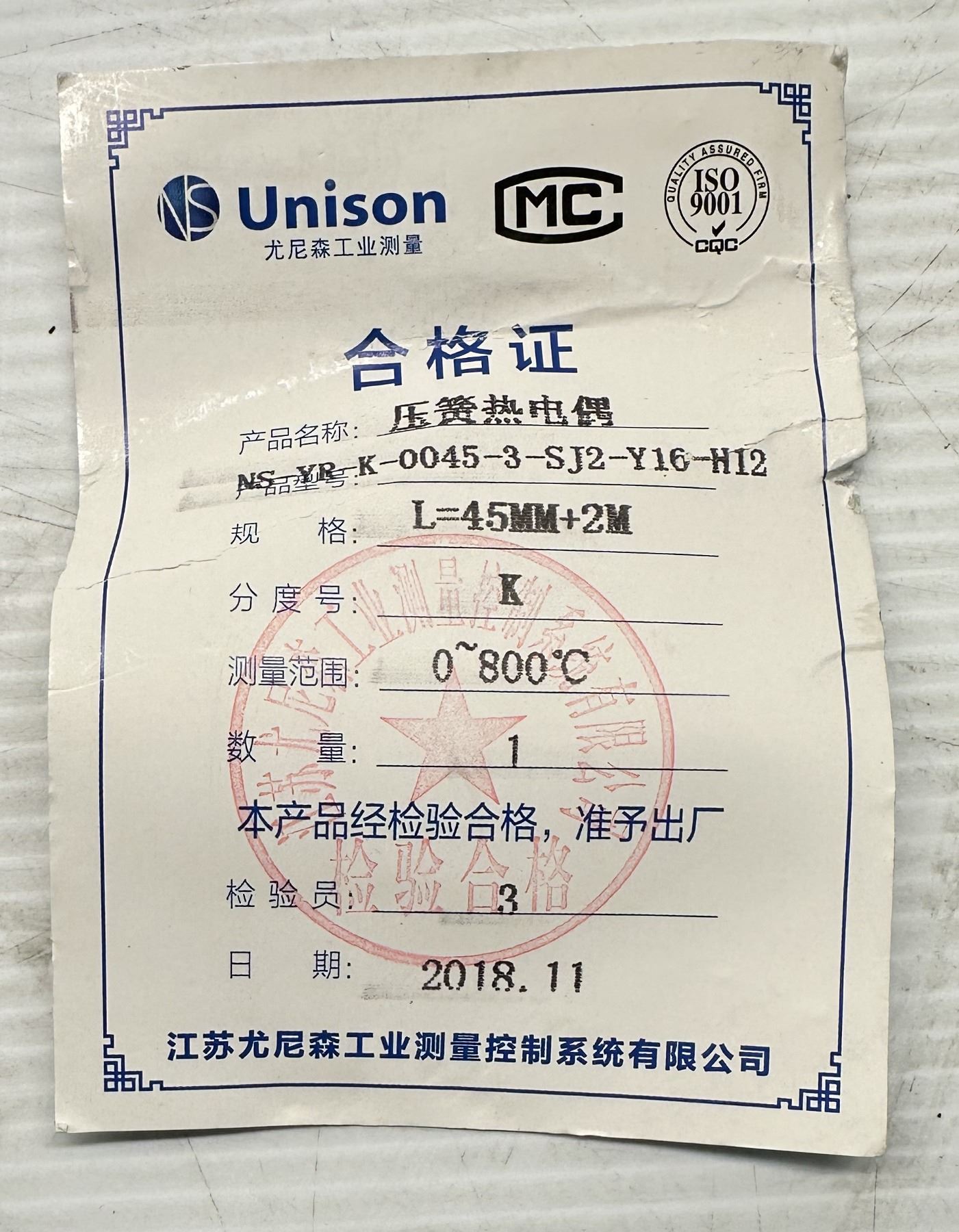 Unison #NS-YR-K-0045-3-SJ2-Y16-H12 / T1XX_1 Thermocouple M8*1.0-45
