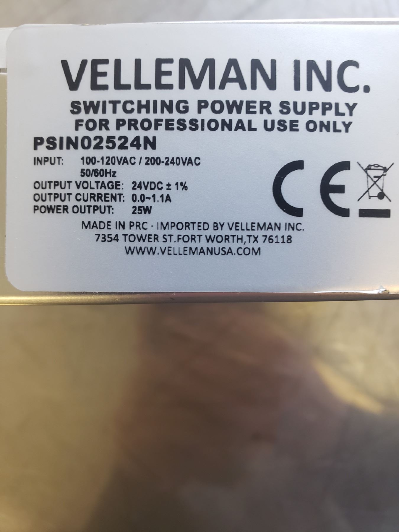 VELLEMAN INC PSIN02524N SWITCHING POWER SUPPLY