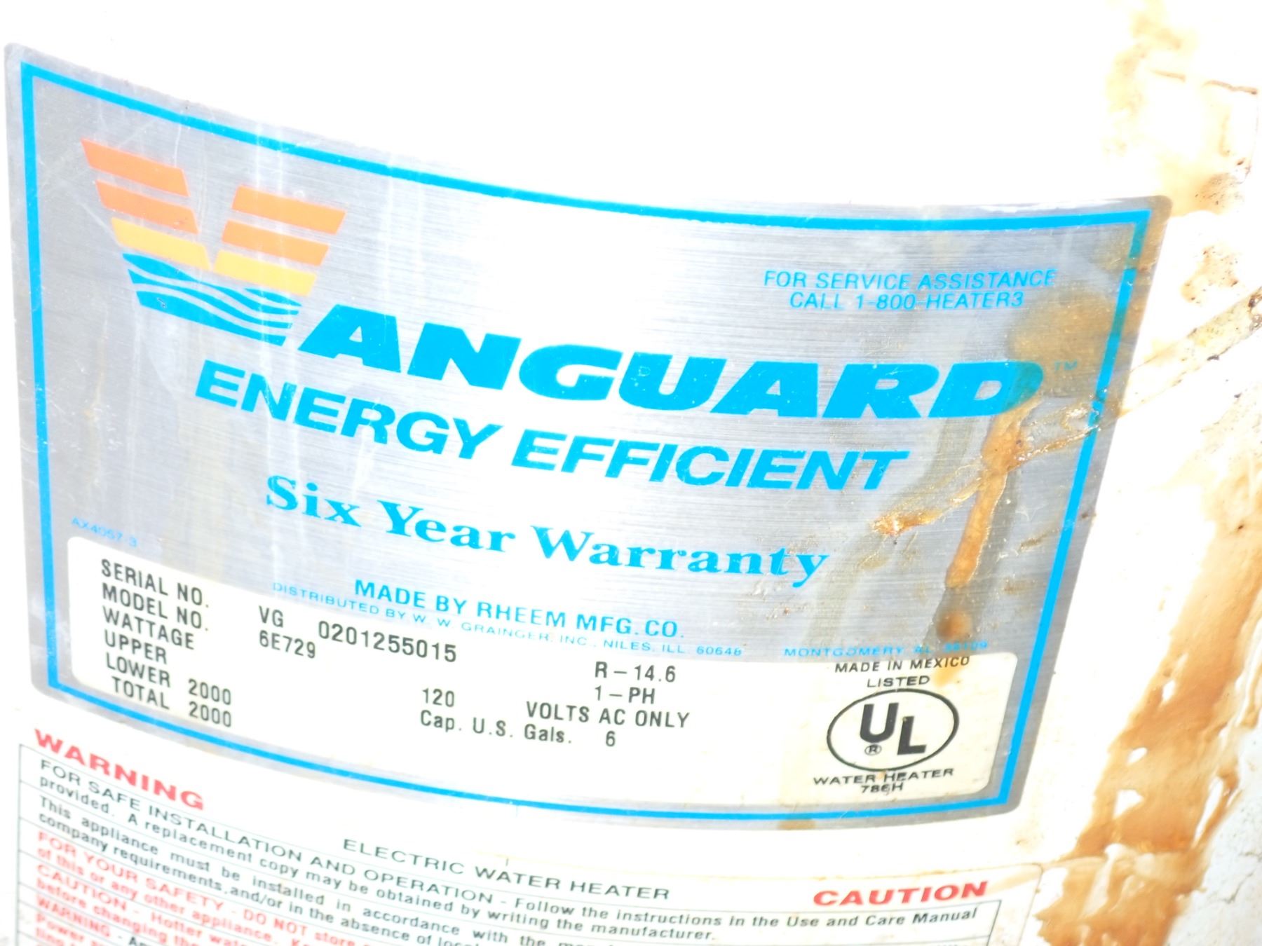 Vanguard 6E729 Water Heater