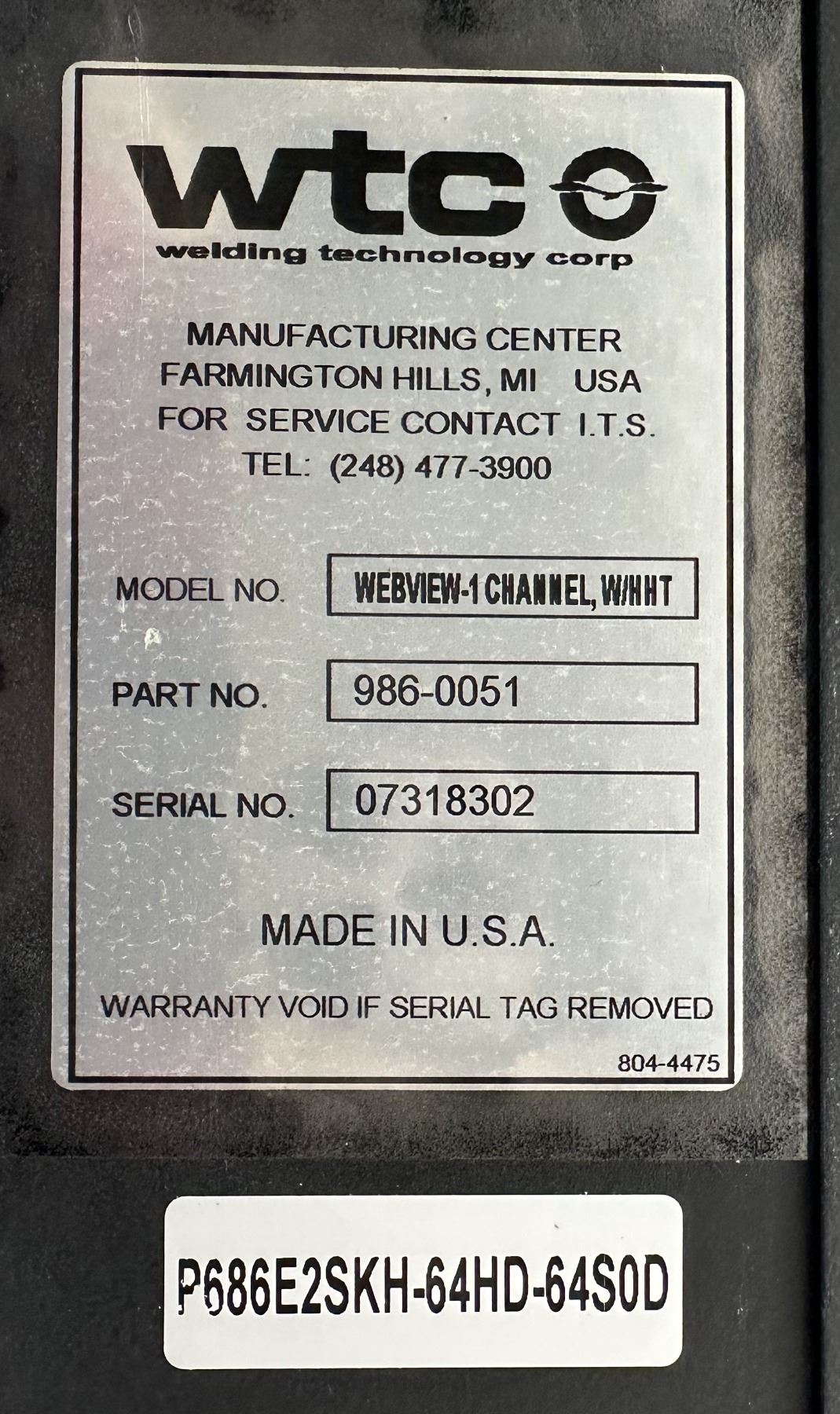 WTC #986-0051 / WEBVBIEW-1 CHANNEL, W/HHT