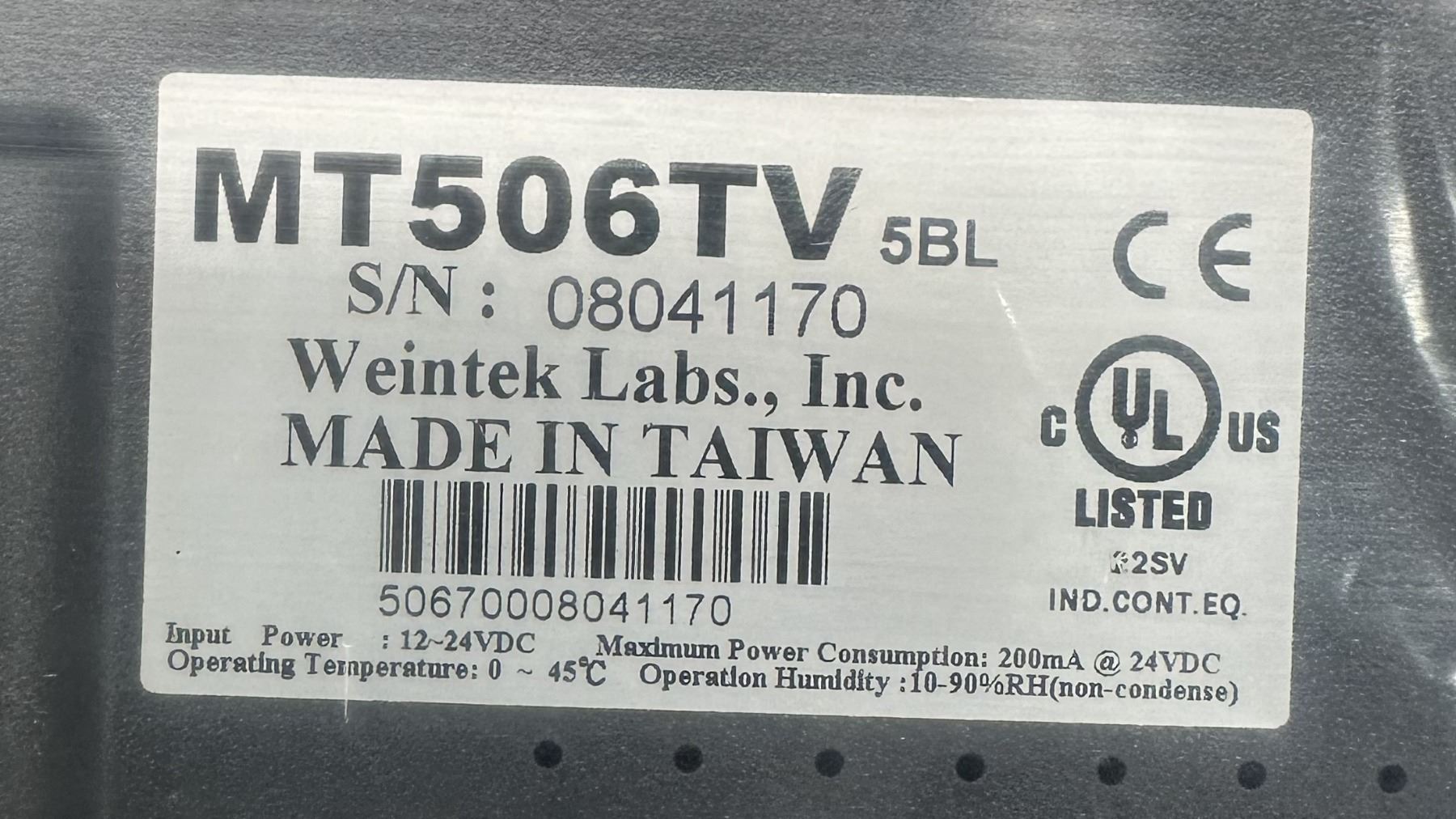 Weintek Labs #MT506TV 5BL Control Panel Interface