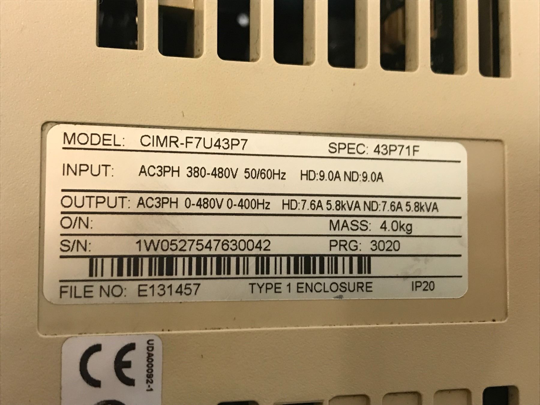 YASKAWA CIMR-F7U43P7 AC DRIVE