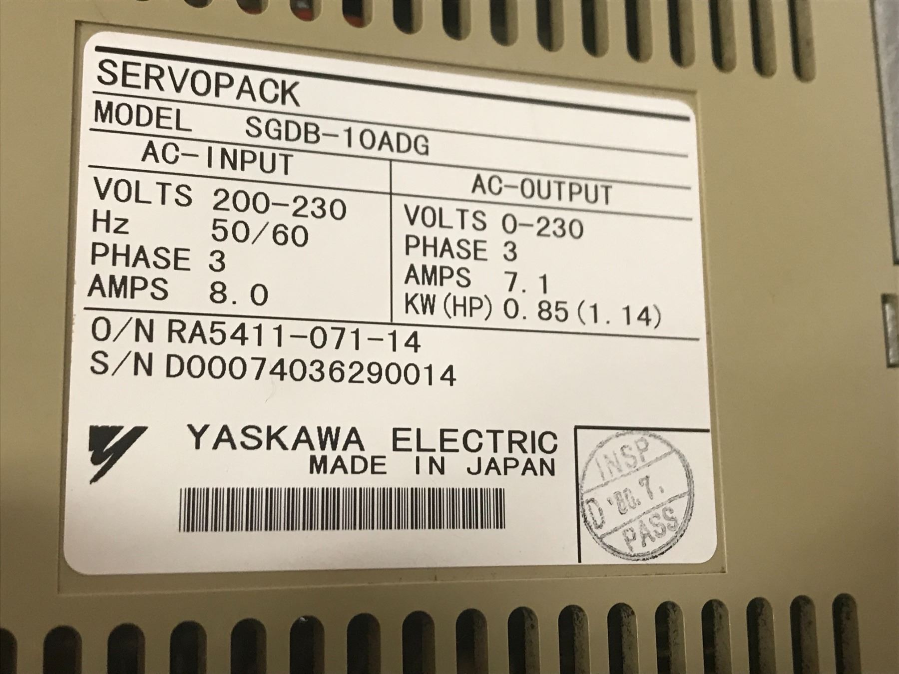 YASKAWA SGDB-10ADG SERVOPACK