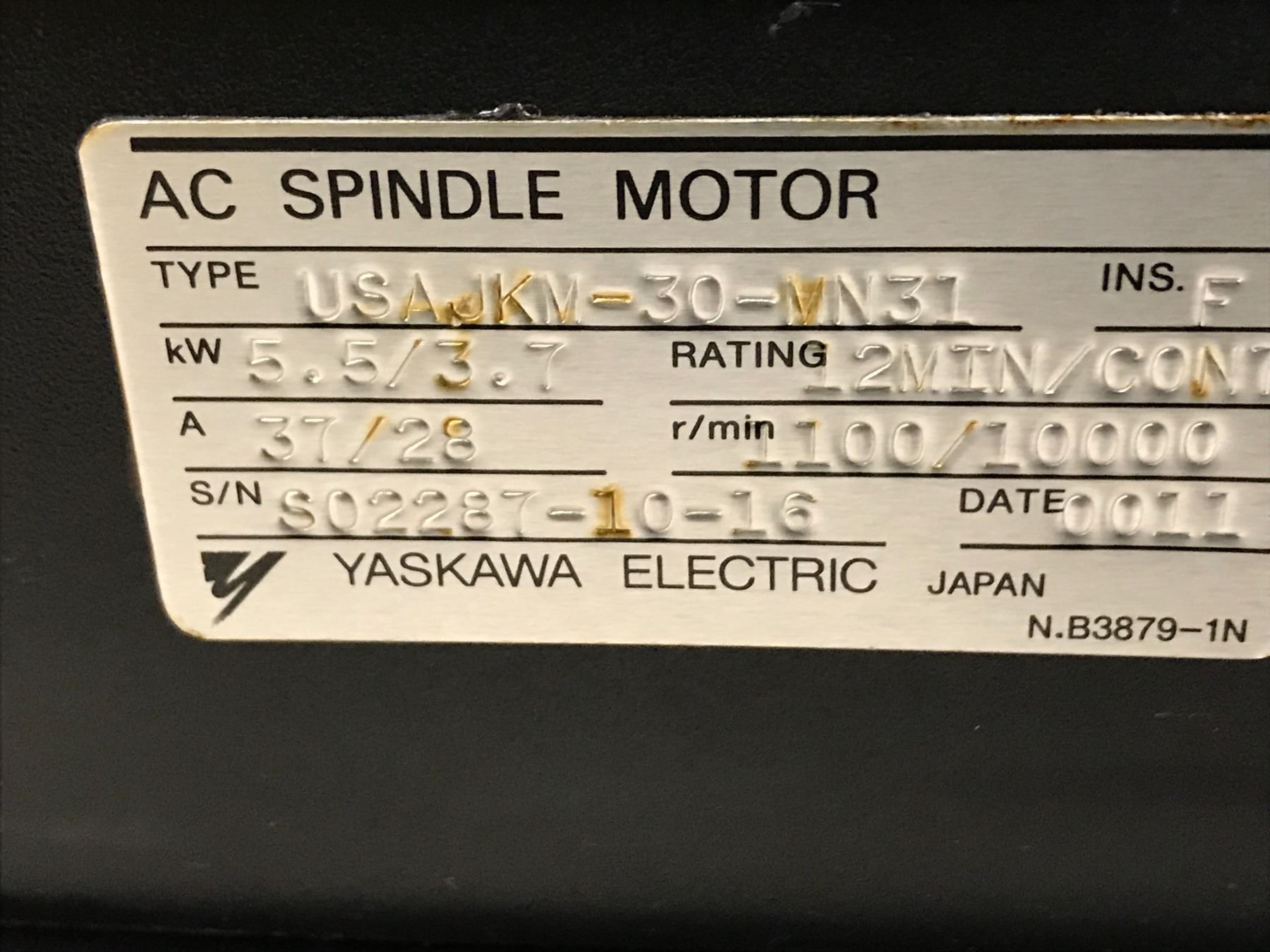 YASKAWA USAJKM-30-MN31 AC SPINDLE MOTOR