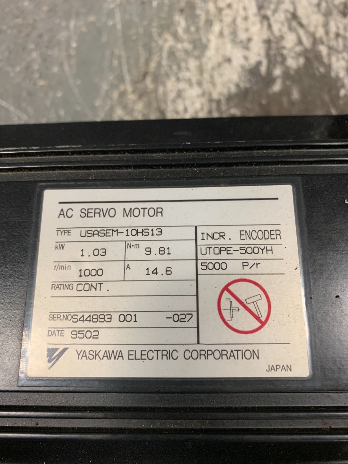 YASKAWA USASEM-10HS13 AC SERVO MOTOR WITH UTOPE-500YH ENCODER