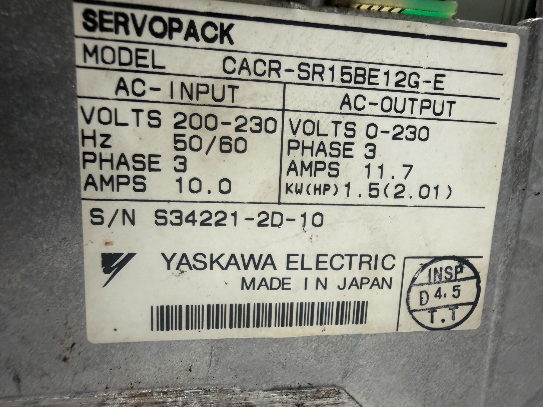 Yaskawa #CACR-SR15BE12G-E Servo Drive