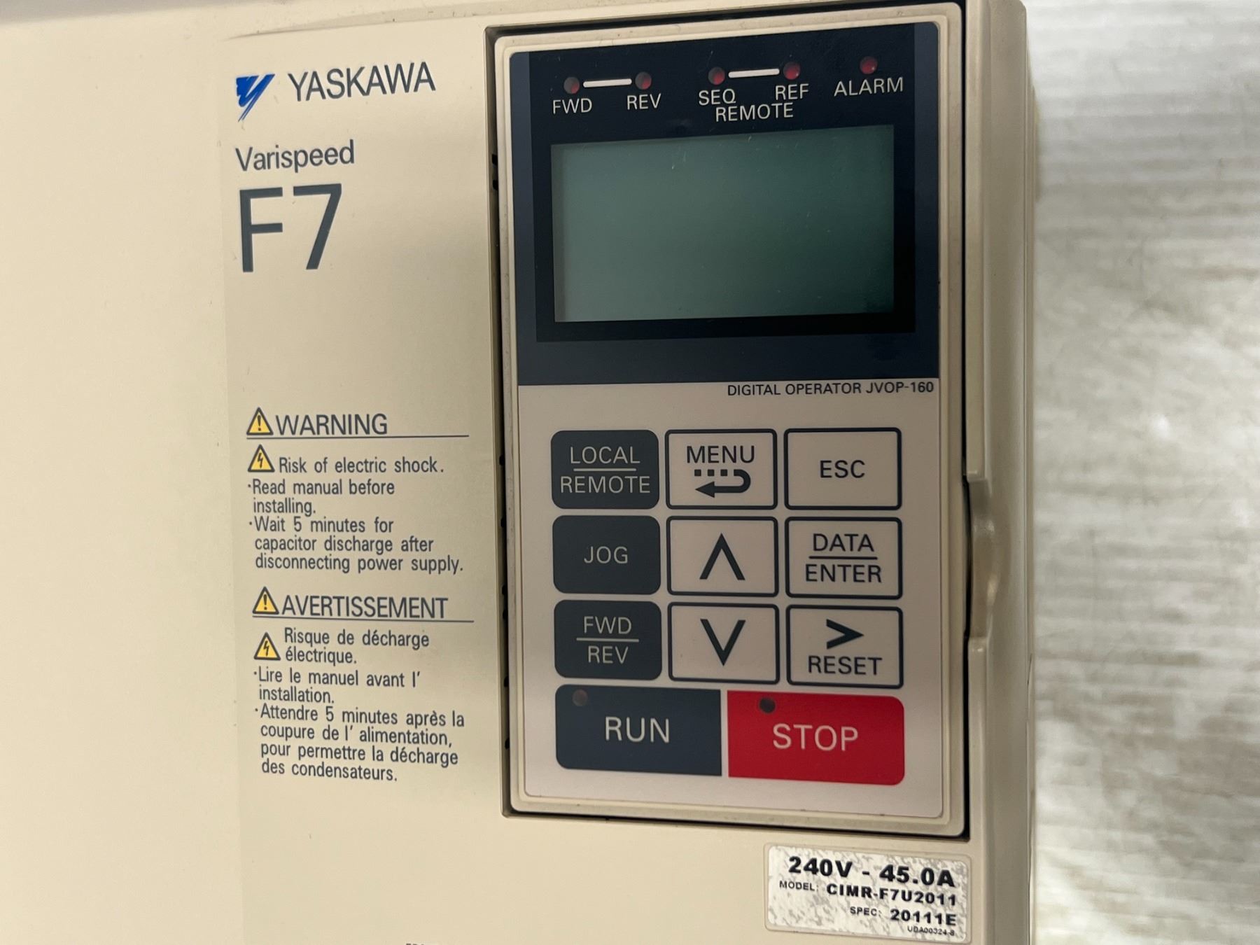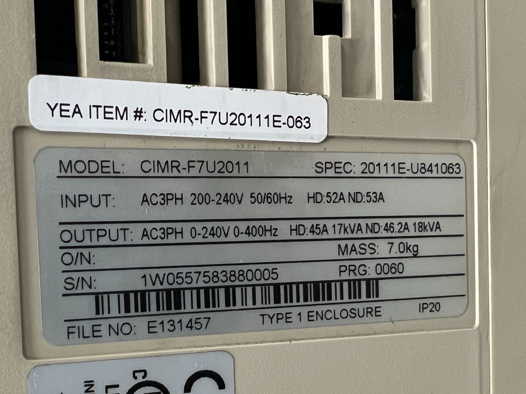 Yaskawa #CIMR-F7U2011 SPEC: 20111E-U841063 F7 Varispeed Drive