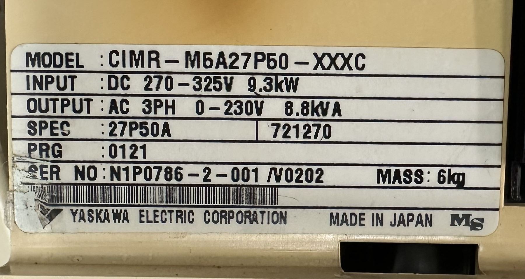 Yaskawa #CIMR-M5A27P50-XXXC / VS-626M5 Inverter