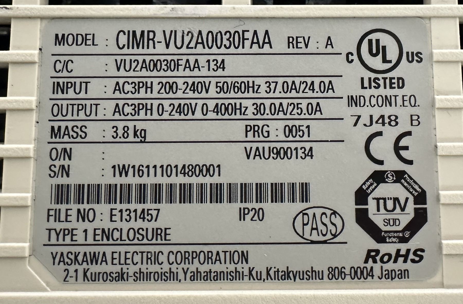 Yaskawa #CIMR-VU2A0030FAA / V1000 AC Drive