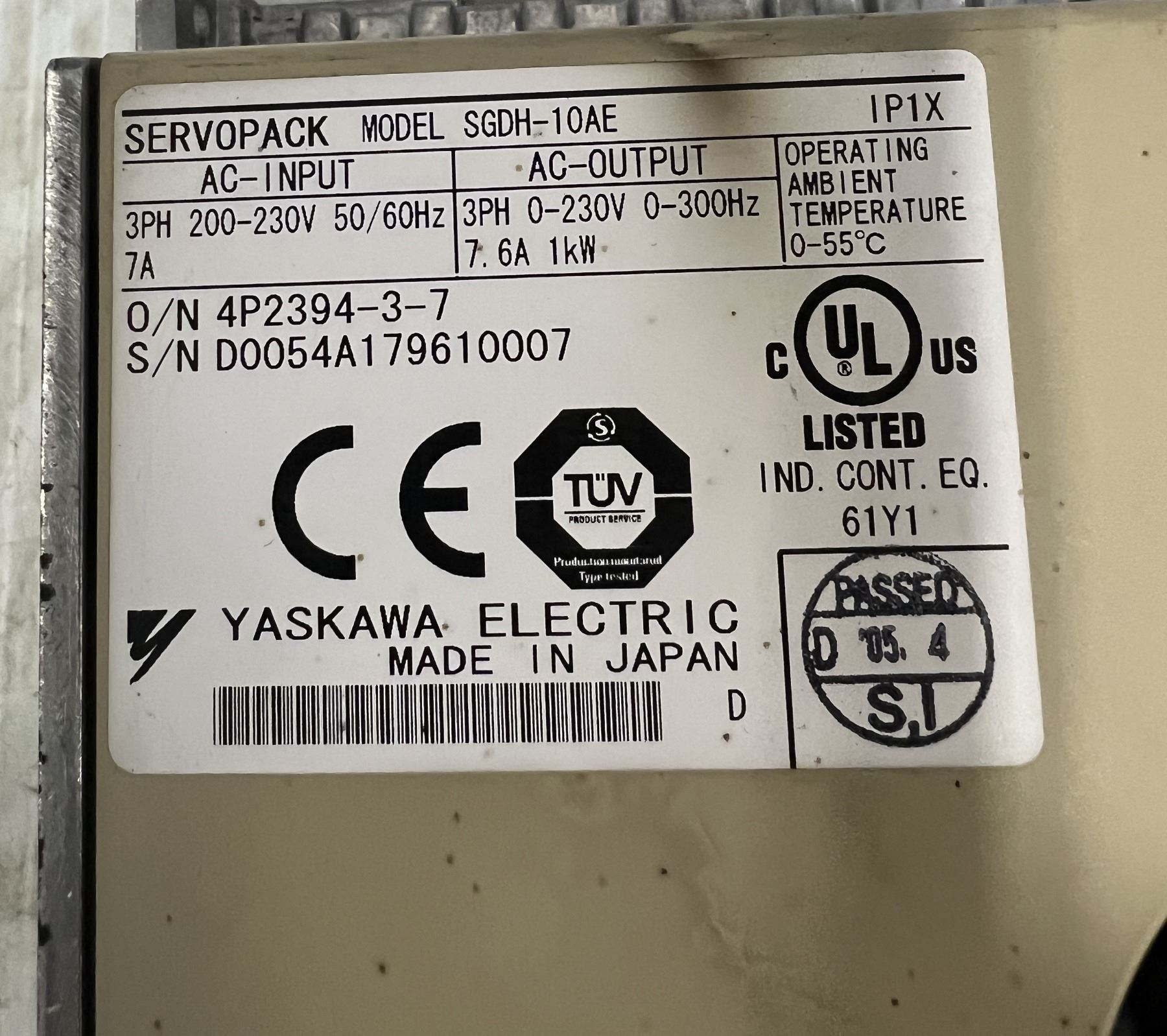 Yaskawa #SGDH-10AE Ver. 35942 Servo Pack
