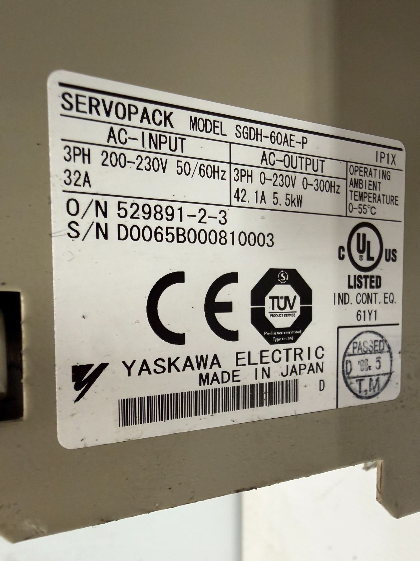 Yaskawa #SGDH-60AE-P Servopack w/ #JUSP-NS115