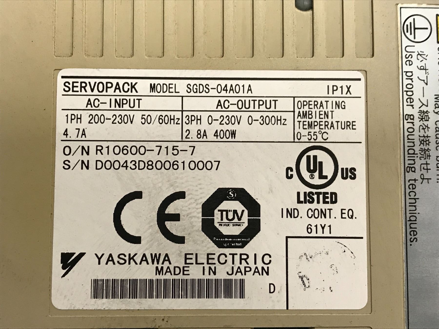 Yaskawa #SGDS-04A01A Servo Pack