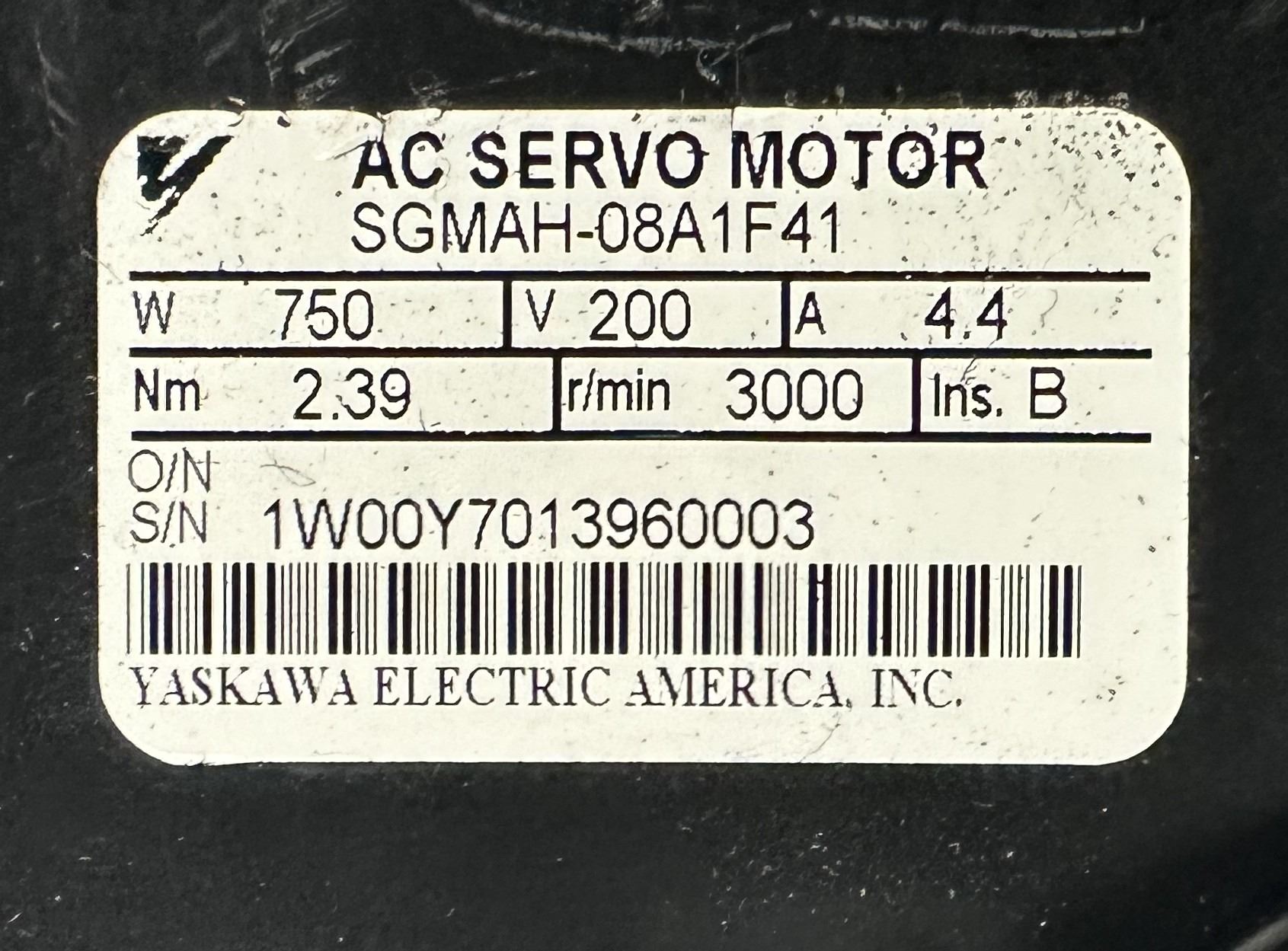 Yaskawa #SGMAH-08A1F41 AC Servo Motor