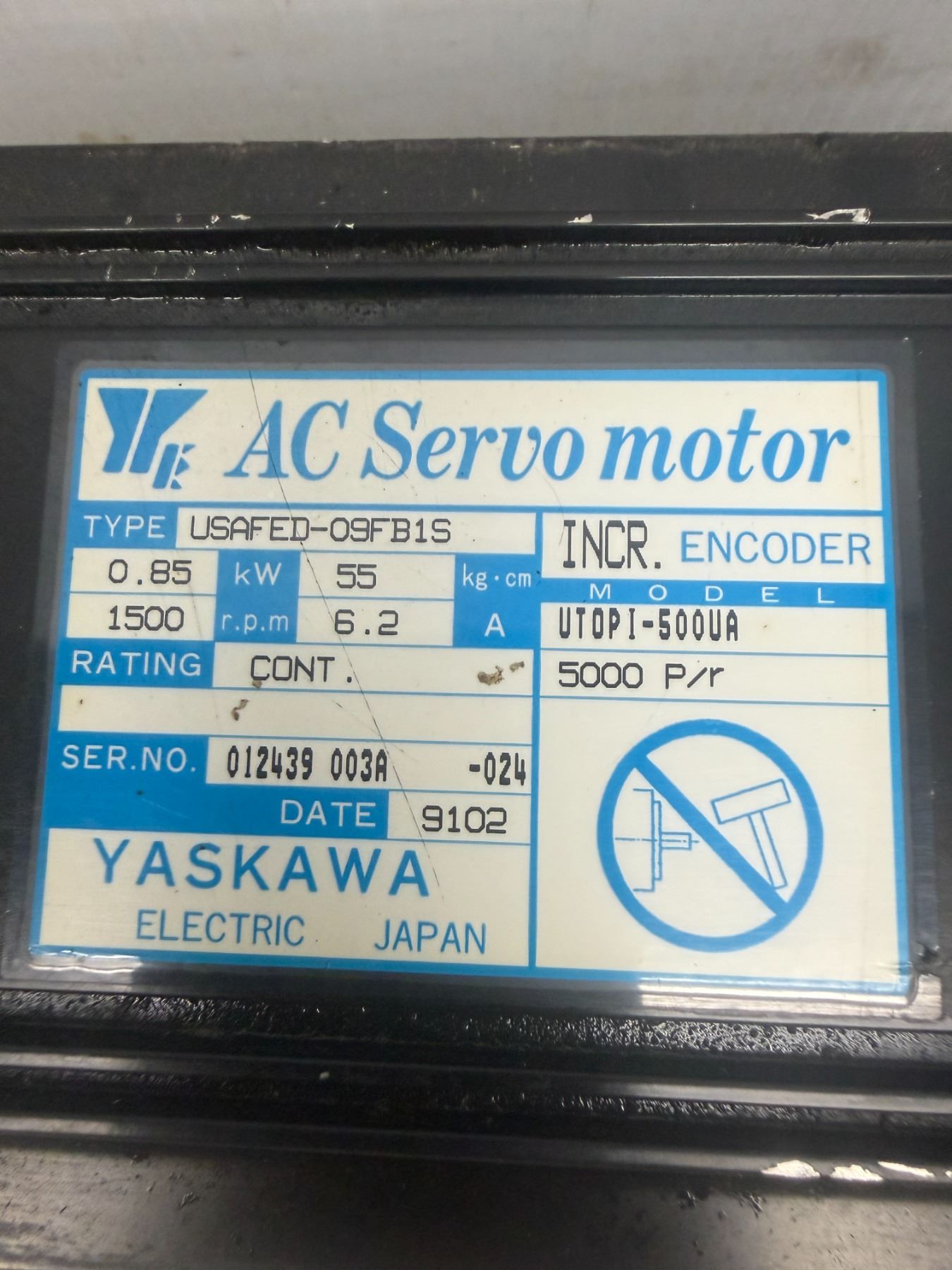 Yaskawa #USAFED-09FB1S AC Servo Motor with Encoder: UTOPI-500UA