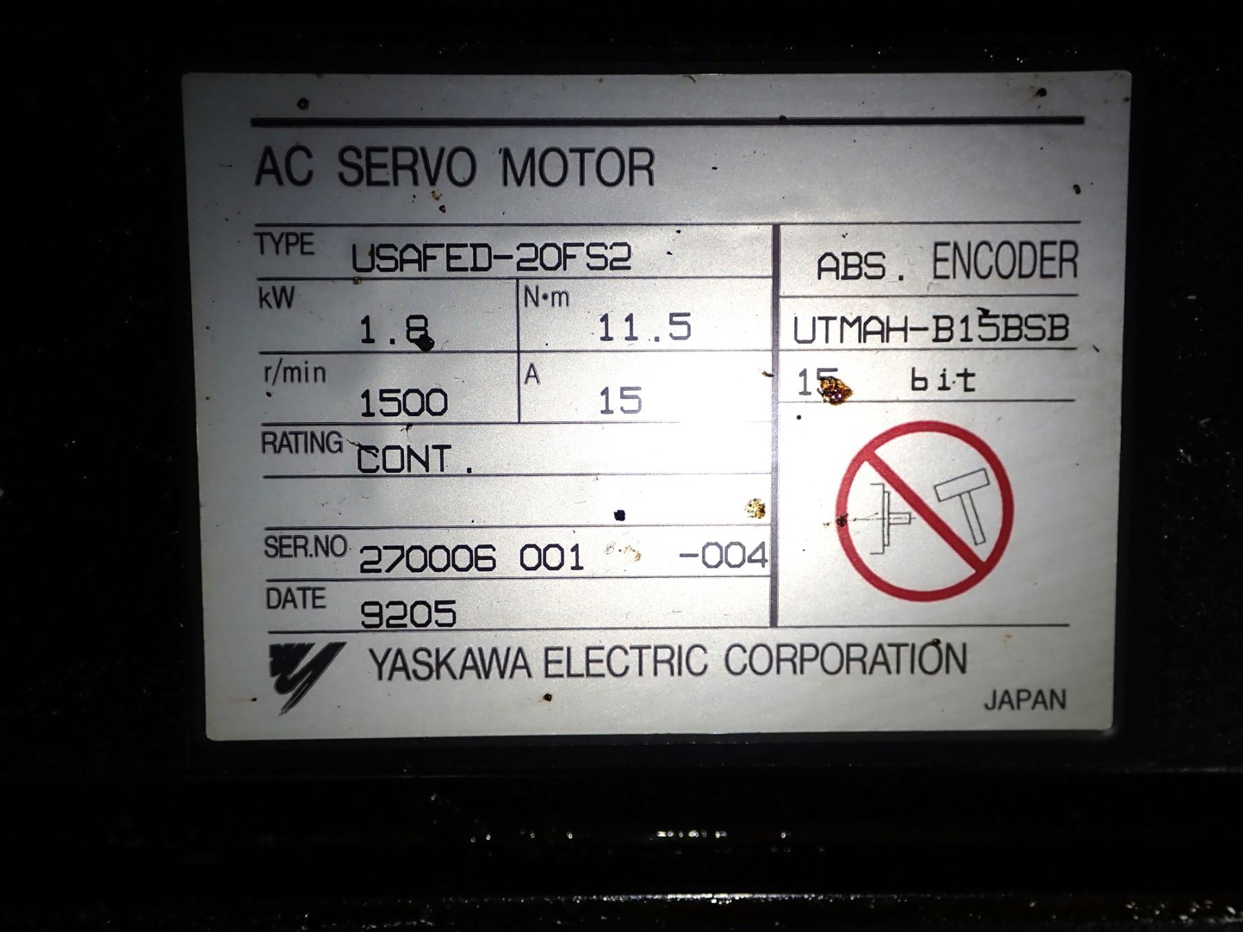 Yaskawa #USAFED-20FS2 AC Servo Motor w/Encoder: UTMAH-B26BSB